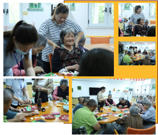 工業(yè)熊志愿者們精神飽滿,帶著真誠(chéng)的微笑,全身心投入本次志愿服務(wù)活動(dòng)。當(dāng)天上午,青年志愿者與老人一起做手工粽子畫,老人們一邊發(fā)揮想象力捏著各種形狀的粽餡,一邊和志愿者閑聊。