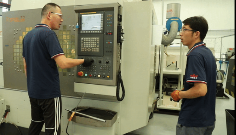 但也不是每一步都很順利,當他遇到刀具發(fā)出一聲異響以后,(這聲音小編是一點兒沒有分辨出)立刻關(guān)停機器,小跑著找到自己的師傅。他直接說明了問題后,正在調(diào)機的師傅立馬來到他的機器前,耐心地幫他找出問題原因,并且教他如何處理,通過重新調(diào)試刀具,快速地解決了問題,小楊也露出了笑容。